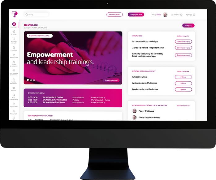 Teleperformance poprosiło nas o zaprojektowanie funkcjonalnego intranetu łączącego funkcje dokumentów, wydarzeń, rekrutacji oraz wniosków.